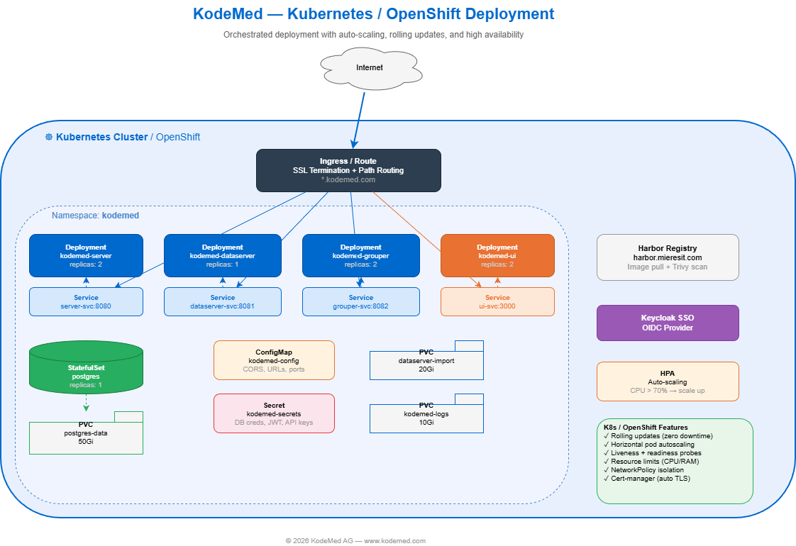 serverUrl | (required) | KodeMed Server URL (e.g. https://kodemed.hospital.ch) |